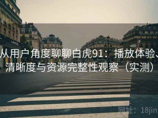 在如今众多视频平台和资源网站中,如何挑选一个既能提供流畅播放体验,又能保障资源完整性和高清晰度的优质平台,成为了不少用户关注的焦点。作为一个对视频质量要求较高的用户,我决定亲自测试一下“白虎91”,并从个人使用角度分享我的一些观察与感受,希望能够帮助那些有相同需求的朋友做出更好的选择。
